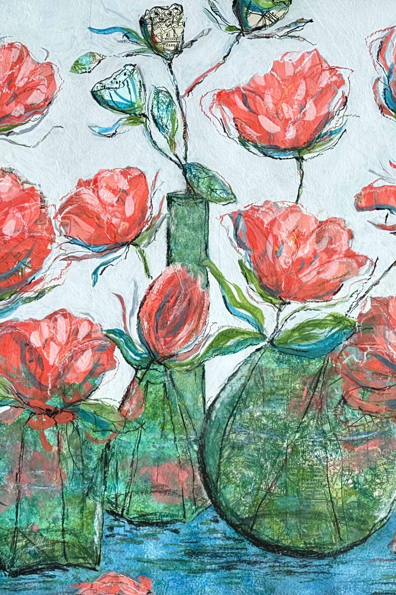 Julia Child, famous chef, author, and television personality provided tips and lessons on how to prepare French food simply and easily. She was a professional creative, and her canvas was her kitchen. As someone who’s creative realm has NEVER been my kitchen, I haven’t watched her shows nor read her books, but she always struck me as a polished, exacting perfectionist. Therefore, when this delightful video arrived in my inbox as part of a weekly newsletter from artist and Draw Together founder Wendy MacNaughton, I chuckled out loud. It features THE Julia Child totally botching her attempt to flip a potato dish in a skillet on television no less. After watching, I felt a kinship to her, not as a fellow cook but as a fellow creative. For anyone who tries to create, to make something, makes mistakes ALL THE TIME. The lesson in this short video is simple: perfection is NOT the goal. Whenever we try to make anything, whether we’re flipping potatoes or painting a poppy, as Julia says, “you just have to have the courage of your convictions” to try. For, she continues, “the only way you learn how to flip things is just to flip them.” Similarly, the only way you learn how to paint poppies is just to paint them, lots and lots of them. Another encouraging phrase (image below) I have on my studio wall is by the artist Lisa Congdon and it says: Practice Makes Progress! YES! Practice does not make the ever-elusive perfect, but it can, in time, make progress.