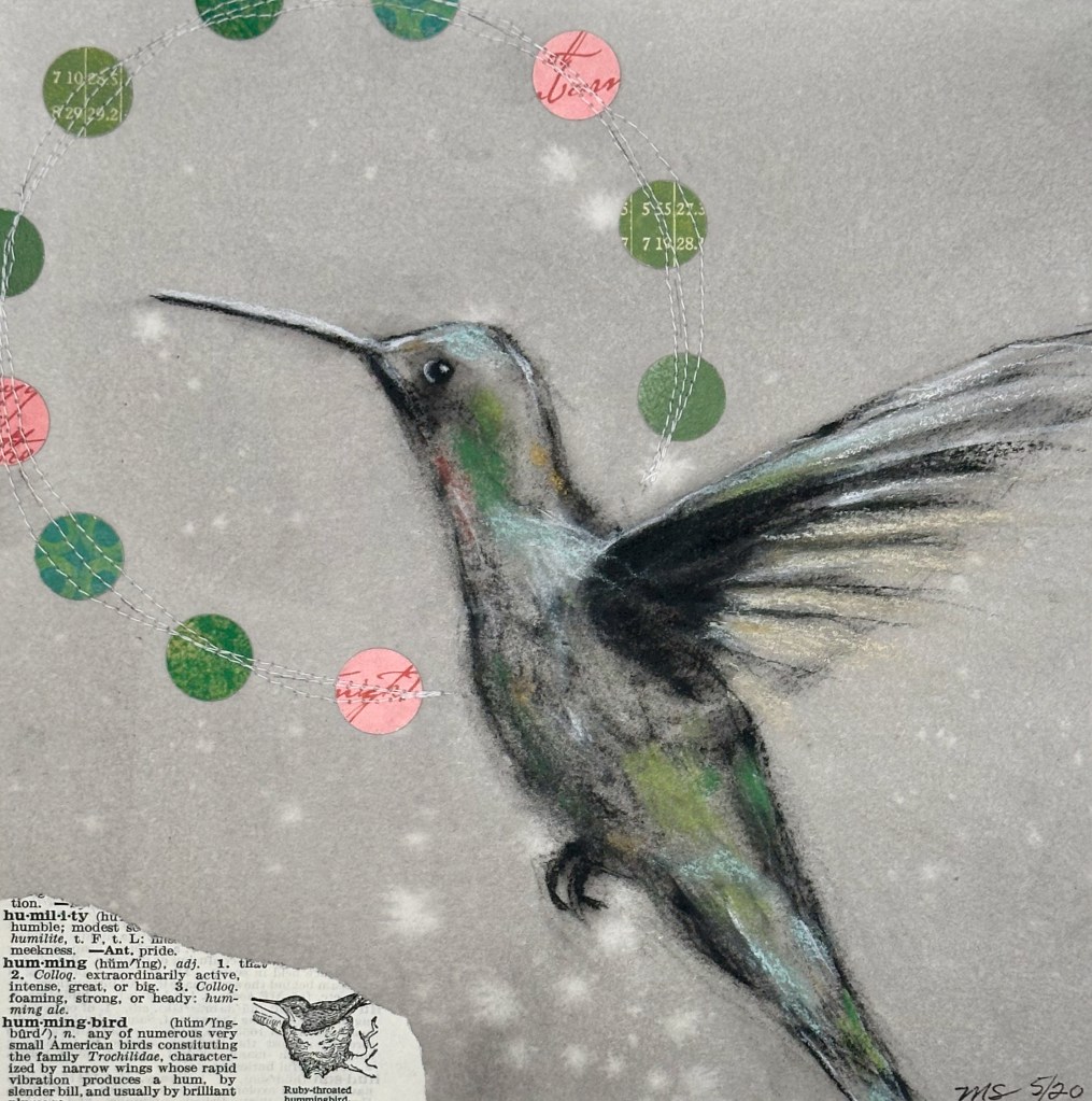 Acrylic and Mixed Media on paper adhered to cradled board.