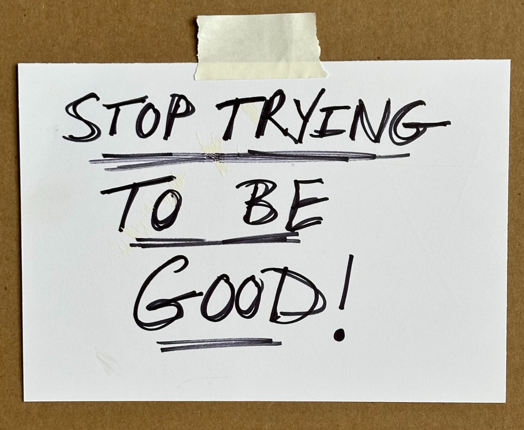 While listening to one of the course’s Q&A calls, I had a “hallelujah” moment when a participant wisely commented, “remember that old saying, ‘anything worth doing is worth doing right,’ well that’s just not true!” What?!? Isn’t that what we’ve (I’ve) always been taught? Isn’t that what the incessant, nagging, bossy voice inside my head has been telling me since I could first process language? That simple statement, innocently uttered in a Zoom call, challenged one of the many deeply embedded “wisdoms” I’ve considered stone tablet-engraved gospel for 55 years. What if that “truth” I’ve been clinging to all this time is anything but true? What if, “anything worth doing is worth doing.” Period. Who says it must be right? Or good?